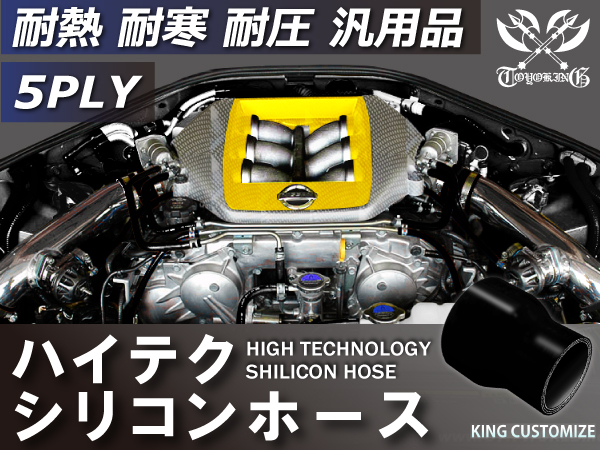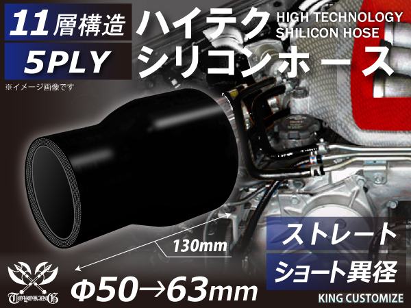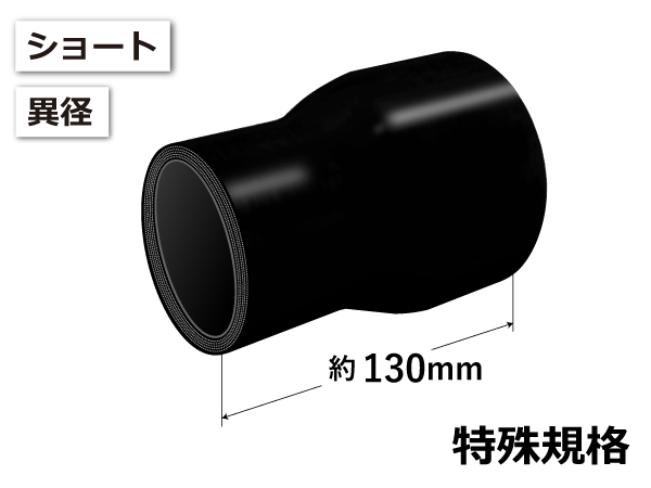 全長130mm 特殊規格 ハイテク シリコンホース ショート 異径 内径Φ50-63mm 黒色 オールブラック ロゴマーク無し 自動車工業 航空工業 港湾産業 化学工業 農業機械工業 5PLY 汎用品